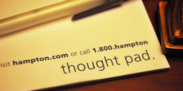 I haven’t stayed at a Hampton Inn in a while, so I hadn’t heard about their “clean and fresh” beds with a newly washed duvet for every guest. It’s something the hotel chain started doing about four years ago. The housekeepers leave a sticky note to let you know.